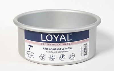 SPECIFICATIONS: Round Anodised Cake Tin – 180mm/7 inch