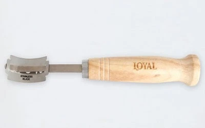A lame or bakers blade is used to score/slash bread dough. This is done prior to baking and will create ventilation that will facility rising during the baking process. The position of the score will dictate where the bread loaf will open or bloom and also gives a decorative appeal to the finished loaf.