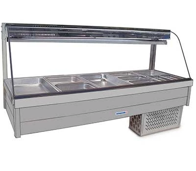 SPECIFICATION: Double row with rear roller doors and pans – Curved glass cold plate with cross fin coil food bar