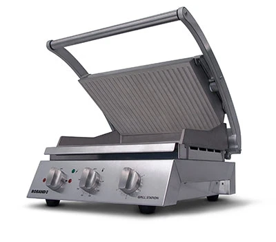The modern, stylish Roband grill station is available in six or eight slice size models and sets the benchmark for commercial contact grills. The versatile unit rapidly toasts sandwiches, paninis and focaccias, in addition to producing beautifully seared and grilled tender meat, poultry and fish.