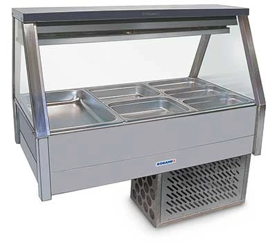 These units match the complete range of Straight Hot Food bars. The cold plate and cross fin coil food bars are designed to provide cooling from the top and bottom sources. The food bar needs to be connected to an external cooling source. They can take a variety of gastronorm pans up to 65mm deep.